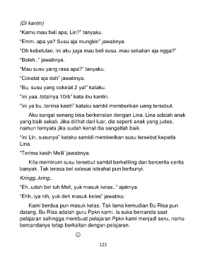 “Oh kebetulan, ini aku juga mau beli susu..mau sekalian aja ngga?”