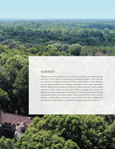 “Harbert is out of the ordinary, not out of the way” proclaims the Harbert Business Association, which reflects the feeling and picturesque atmosphere of the town that was created by Scandinavian families. Harbert’s close proximity to Lake Michigan and the amenities offered by surrounding communities make it a great destination. With the Warren Dunes located mere miles away, Harbert has access to many outdoor activities, as well as shops and restaurants. Harbert’s shoppers will encounter art galleries and antique shops, while a wide variety of trendy shops are located in nearby communities. Harbert is served by the River Valley School District. I-94 is located 10 minutes or less from almost all points of town in Harbert. Red Arrow Highway also runs directly through Harbert as an alternative transportation option for drivers.