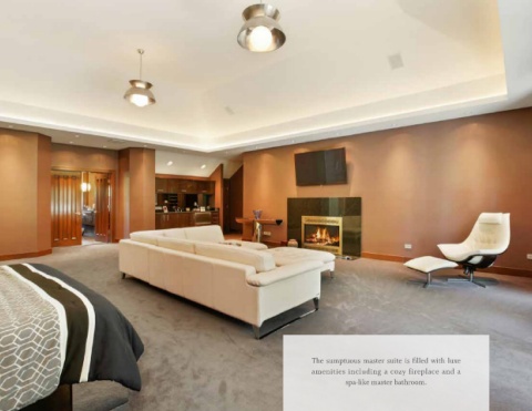 The sumptuous master suite is filled with luxe amenities including a cozy fireplace and a spa-like master bathroom.