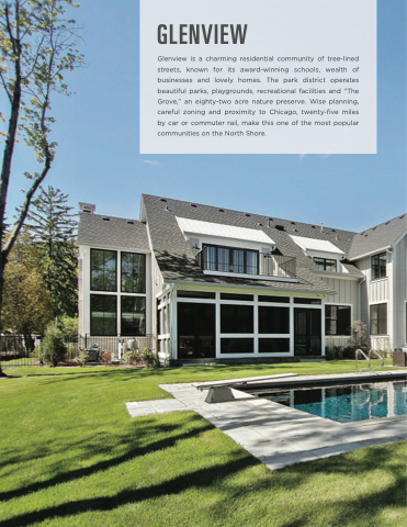 Glenview is a charming residential community of tree-lined streets, known for its award-winning schools, wealth of businesses and lovely homes. The park district operates beautiful parks, playgrounds, recreational facilities and “The Grove,” an eighty-two acre nature preserve. Wise planning, careful zoning and proximity to Chicago, twenty-five miles by car or commuter rail, make this one of the most popular communities on the North Shore.