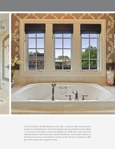 sitting room and elegant details. A haven for relaxation, the master bathroom treats residents
