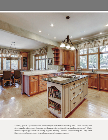 A striking epicurean space, the kitchen is sure to impress even the most discerning chefs. Custom cabinetry lines the room and granite sheathes the countertops. Exquisite trim details and features make this a gourmet’s delight. Professional grade appliances make cooking enjoyable. Boasting a breakfast bar with seating and a large center island, this space has no shortage of casual seating or meal preparation options.