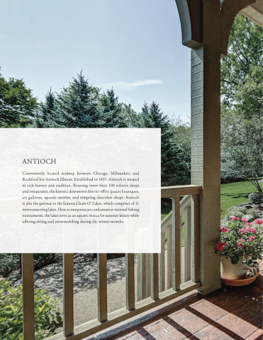 Conveniently located midway between Chicago, Milwaukee, and Rockford lies Antioch Illinois. Established in 1837, Antioch is steeped in rich history and tradition. Boasting more than 100 eclectic shops and restaurants, the historic downtown district offers quaint boutiques, art galleries, upscale eateries, and tempting chocolate shops. Antioch is also the gateway to the famous Chain O’ Lakes, which comprises of 11 interconnecting lakes. Host to numerous pro and amateur national fishing tournaments, the lakes serve as an aquatic mecca for summer leisure while offering skiing and snowmobiling during the winter months.