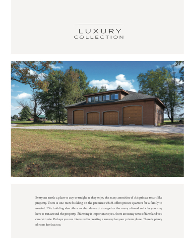 Everyone needs a place to stay overnight as they enjoy the many amenities of this private resort-like property. There is one more building on the premises which offers private quarters for a family to unwind. This building also offers an abundance of storage for the many off-road vehicles you may have to run around the property. If farming is important to you, there are many acres of farmland you can cultivate. Perhaps you are interested in creating a runway for your private plane. There is plenty of room for that too.