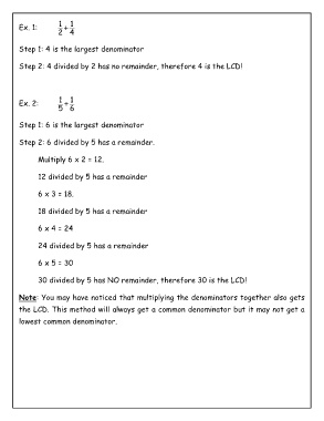 the LCD. This method will always get a common denominator but it may not get a