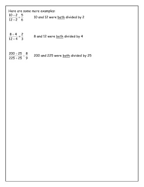 Here are some more examples: 10 2 5 10 and 12 were both divided by 2 12 2 6 8 4 2 8 and 12 were both divided by 4 12 4 3 200 25 8 200 and 225 were both divided by 25 225 25 9