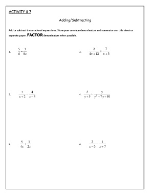Add or subtract these rational expressions. Show your common denominators and numerators on this sheet or