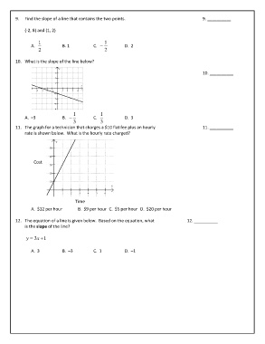 11. The graph for a technician that charges a $10 flat fee plus an hourly 11. __________