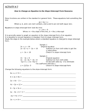 Study the steps in the example below where a standard equation is changed to slope-intercept