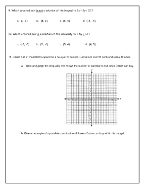 a. Write and graph the inequality that shows the number of carnations and roses Carlos can buy.