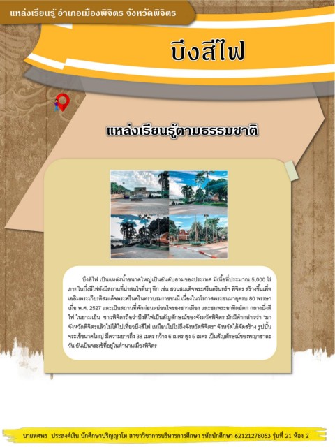 จังหวัดพิจิตรแลวไม่ไดไปเทยวบึงสีไฟ เหมอนไปไม่ถึงจังหวัดพิจิตร" จังหวัดไดจัดสรำง รปป้น
