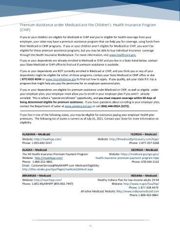 premiums. The following list of states is current as of July 31, 2021. Contact your State for more information on