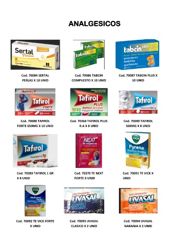 Cod. 70089 TAFIROL 1 GR Cod. 70370 TE NEXT Cod. 70091 TE VICK X