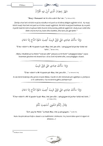 "Muaji i Ramazanit në të cilin u zbrit Kur'ani..." (el-Bekare/185)