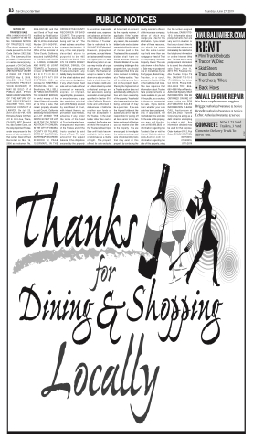 the file number assigned to this case, CA05001713- 15-3. Information about postponements that are very short in duration or that occur close in time to the scheduled sale may not immediately be reflected in the telephone information or on the Internet Web site. The best way to verify postponement information is to attend the scheduled sale. Date: June 11, 2019 MTC Financial Inc. dba Trustee Corps TS No. CA05001713-15-3 17100 Gillette Ave Irvine, CA 92614 Phone:949- 252-8300 TDD: 866- 660-4288 Myron Ravelo, Authorized Signatory SALE INFORMATION CAN BE OBTAINED ONLINE AT www.Auction.com FOR AUTOMATED SALES INFORMATION PLEASE CALL: Auction.com at 800.280.2832 Trustee Corps may be acting as a debt collector attempting to collect a debt. Any information obtained may be used for that purpose. Order Number 61012, Pub Dates: DINUBA SENTINEL