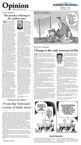 The Dinuba Sentinel welcomes submissions of letters to the editor on topics of local relevance. Word limit is 350. Letters are considered once per month for each submitter.