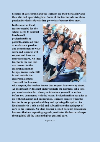 because of late coming and the learners see their behaviour and