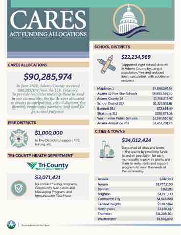 In June 2020, Adams County received $90,285,974 from the U.S. Treasury.