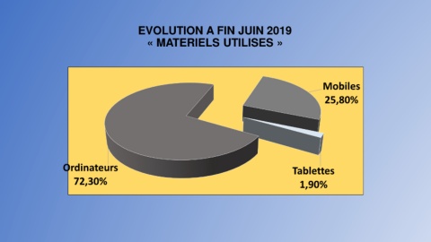 EVOLUTION A FIN JUIN 2019 « MATERIELS UTILISES » Mobiles 25,80% Ordinateurs Tablettes 72,30% 1,90%
