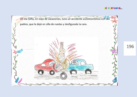 ASÍ CONTAMOS… Un día Sofía, en viaje de vacaciones, tuvo un accidente automovilístico con sus padres, que la dejó en silla de ruedas y desfigurada la cara. 196