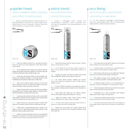 вязкие капли вещества на влажные или сухие волосы. FR | Laque fixation forte. Idéale pour des coiffures modernes. HU | Összetevőivel védi a hajat, természetesen fixál bármilyen