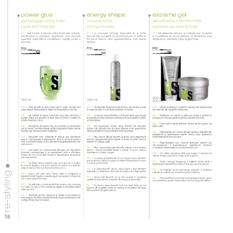 EN | Shiny gel with an ultra strong hold to create, structure and EN | The Nouvelle strong foam holds all forms and volumes in order EN | Definite modelling, it is ideal for sculpting and shaping trendy