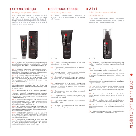 EN | Antiage face cream releasing actives with niosome technology for EN | Energising, moisturising and toning shower gel with delicate EN | 3 actions in 1 product; it strengthens, prevents dandruff and