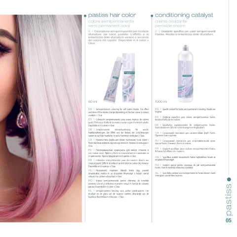 EN | Semi‐permanent colouring for soft pastel shades. The effect EN | Specific oxidant for Pastiss semi‐permanent colouring. Shades are