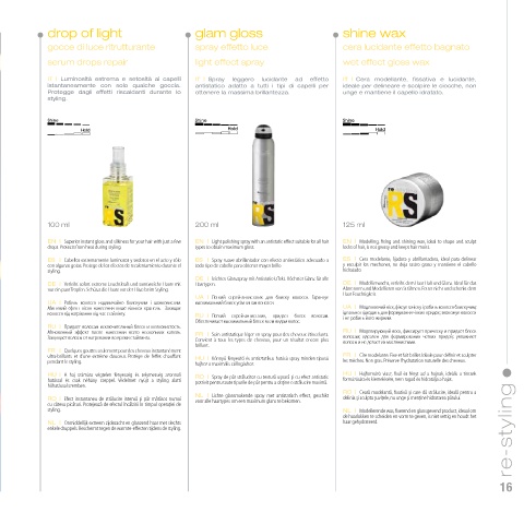 EN | Superior instant gloss and silkiness for your hair with just a few EN | Light polishing spray with an antistatic effect suitable for all hair EN | Modelling, fixing and shining wax, ideal to shape and sculpt