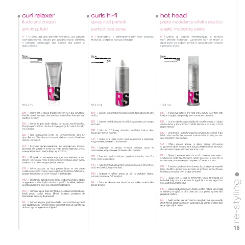 EN | Cream with a strong straightening effect, it also conditions. EN | Support and definition for elastic, natural, full-bodied curls with EN | It gives hair softness and hold with a natural look. Work with