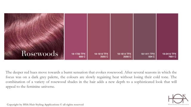 combination of a variety of rosewood shades in the hair adds a new depth to a sophisticated look that will