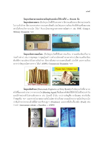 มากกวาวัตถุระเบิดทางทหาร ไดแก ANFO, Commercial Dynamite ฯลฯ