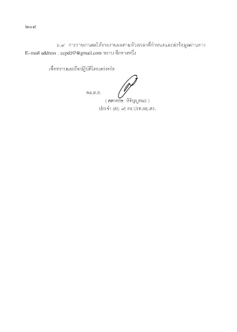 ๒๐๘ ๖.๙ การรายงานผลใหรายงานผลตามหวงเวลาที่กําหนดและสงขอมูลผานทาง E-mail address : ccpd317@gmail.com ทราบ อีกทางหนึ่ง เพื่อทราบและถือปฏิบัติโดยเครงครัด พล.ต.ต. ( ศตวรรษ หิรัญบูรณะ ) ประจํา (สบ ๙) ตร.ปรท.ผบ.ตร.