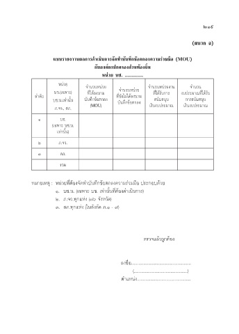 ẺÃÒ§ÒÒ¹¼Å¡ÒÃดําà¹Ô¹¡ÒèѴทําºÑ¹·Ö¡¢ŒÍμ¡Å§¤ÇÒÁËÇÁÁ×Í (MOU)