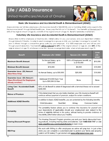 life insurance benefit through United Healthcare. Anzea pays the full cost of this benefit. Your benefits will be reduced to