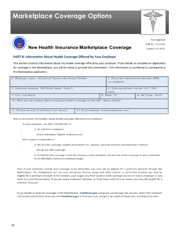 This section contains information about any health coverage offered by your employer. If you decide to complete an application