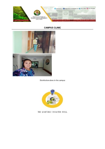 CAMPUS CLINIC Disinfection done in the campus THE QUARTERLY DISASTER DRILL