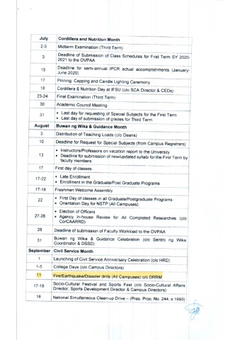 ; Deadline of Submission of Class Schedules for First Term SY 2020-