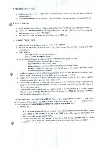 10.MAINTENANCE OF THE DORMITORY. Dorm residents are held responsible in maintaining