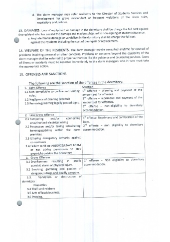 14.WELFARE OF THE RESIDENTS. The dorm manager maybe consulted anytime for counsel of