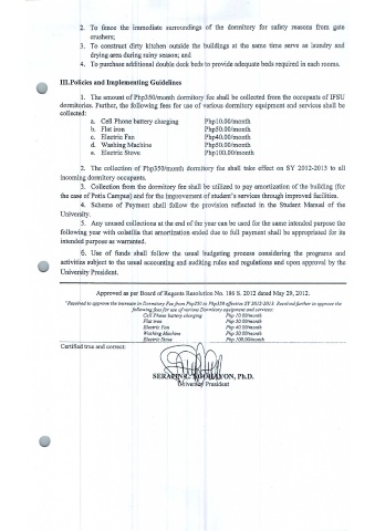 2.The collection of Php350/month dormitory fee shall take effect on SY 2012-2013 to all