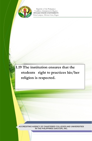 I.19 The institution ensures that the students right to practices his/her religion is respected.