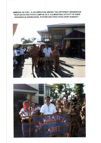 AMMUNG AD IFSU , A CELEBRATION AMONG THE DIFFERENT INDIGENOUS PEOPLES IN IFSU POTIA CAMPUS AS A CULMINATING ACTIVITY IN THEIR INDIGENOUS KNOWLEDGE, SYSTEM AND PRACTICES (IKSP) SUBJECT .
