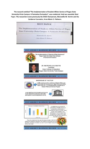 The research entitled “The Implementation of Student Affairs Service of Ifugao State