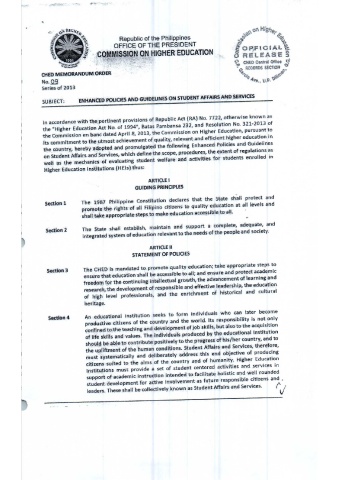 ENHANCED POUCIES AND GUIDELINES ON STUDENT AFFAIRS AND SERVICES