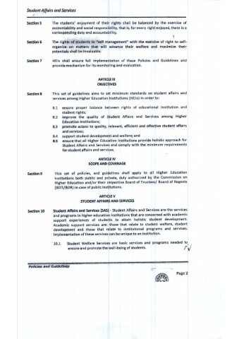 Section 8 This set of guidelines alms to sit minimum standards on student affairs and