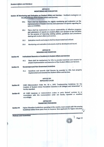 Section 40 Institutional Rewards on Excellence In Student Affairs and Sendees