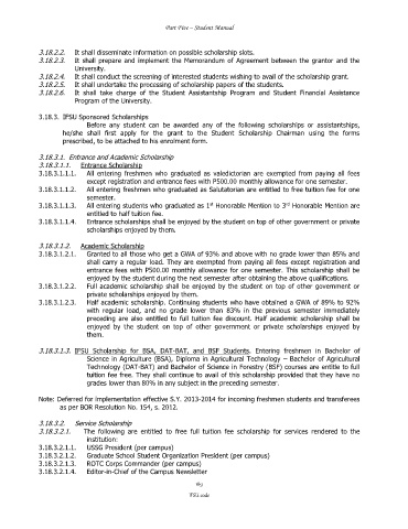 3.18.3.1.3. IFSU Scholarship for BSA, DAT-BAT, and BSF Students. Entering freshmen in Bachelor of