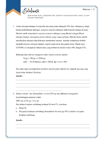 1. Unsur nitrogen terdapat di atmosfer dan menyusun sebanyak 78% dari volumenya, tetapi