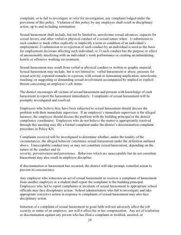 Any employee who witnesses an act of sexual harassment or receives a complaint of harassment from another employee or a student shall report the complaint to the building principal. Employees who fail to report complaints or incidents of sexual harassment to appropriate school officials may face disciplinary action. School administrators who fail to investigate and take appropriate corrective action in response to complaints of sexual harassment may also face disciplinary action.